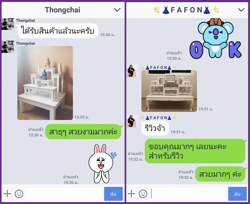 รีวิวจากลูกค้า โต๊ะหมู่ สีขาว ร้านธรรมดี
